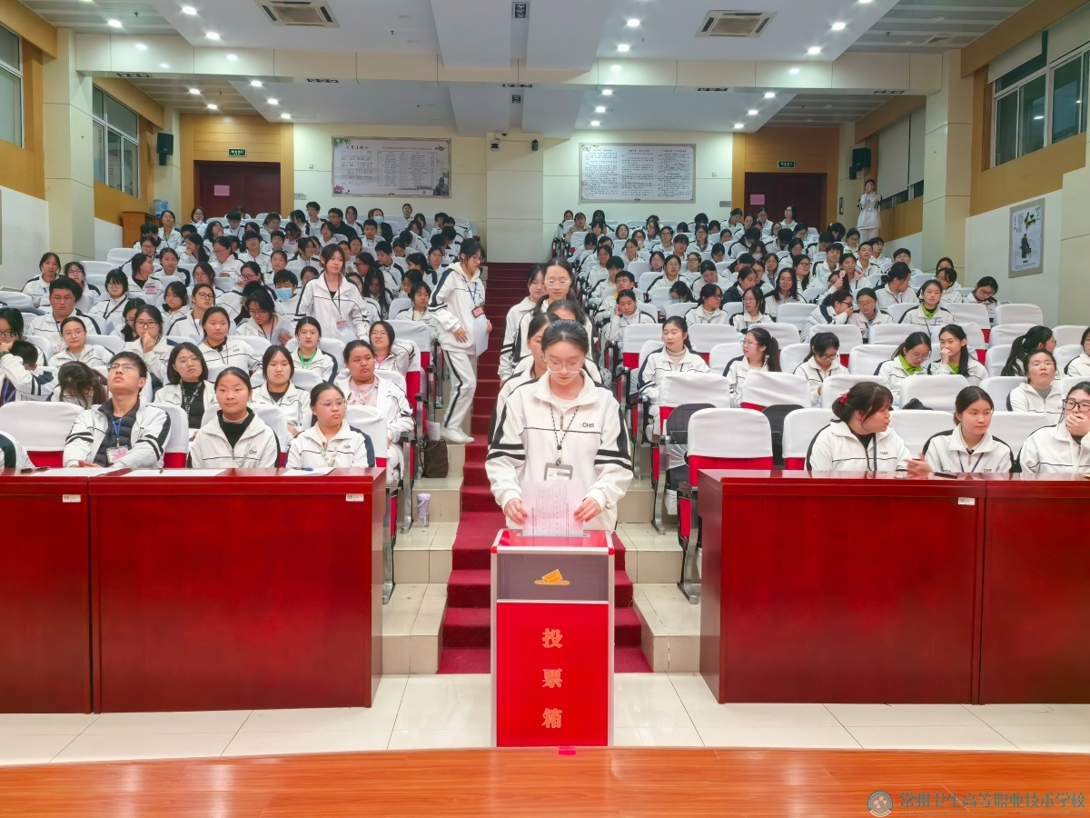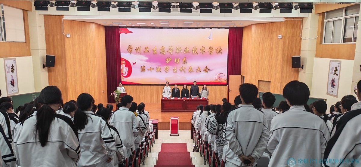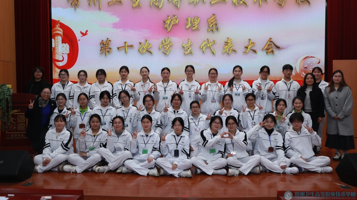 常州卫生高等职业技术学校护理系第十次学生代表大会于2025年12月2日下午3:50在报告厅隆重举行。护理系主任、党支部书记缪金萍、护理系副主任吴蓉、校团委郑涛、护理系团总支书记陈仪婷出席了此次会议,与会的还有经过各班级民主推选产生的187名学代会代表。