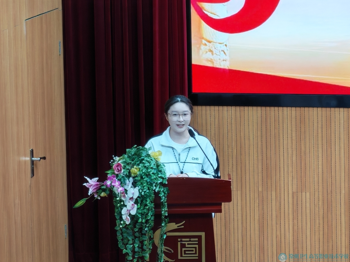 护理系学生会主席陆億君作《凝心聚力担使命 奋楫笃行护生命 守正创新谋发展 挺膺担当谱华章 》的工作报告。报告回顾了前期系学生会的工作和取得的成绩。在未来工作中,系学生会将落实优良文化建设,传承卫校百年精神,紧扣时代脉搏,坚持“全心全意为学生服务”的宗旨,在全力推动组织和个人共同发展的同时,为学校的改革、建设与发展贡献力量。